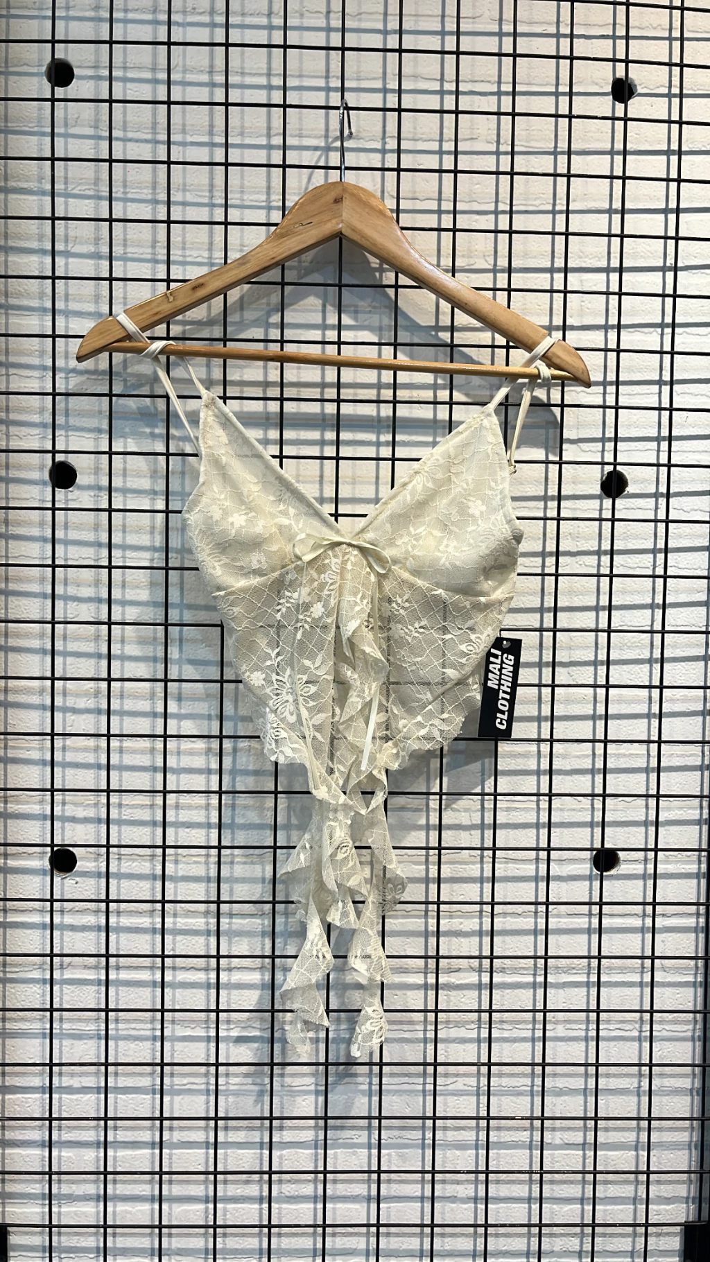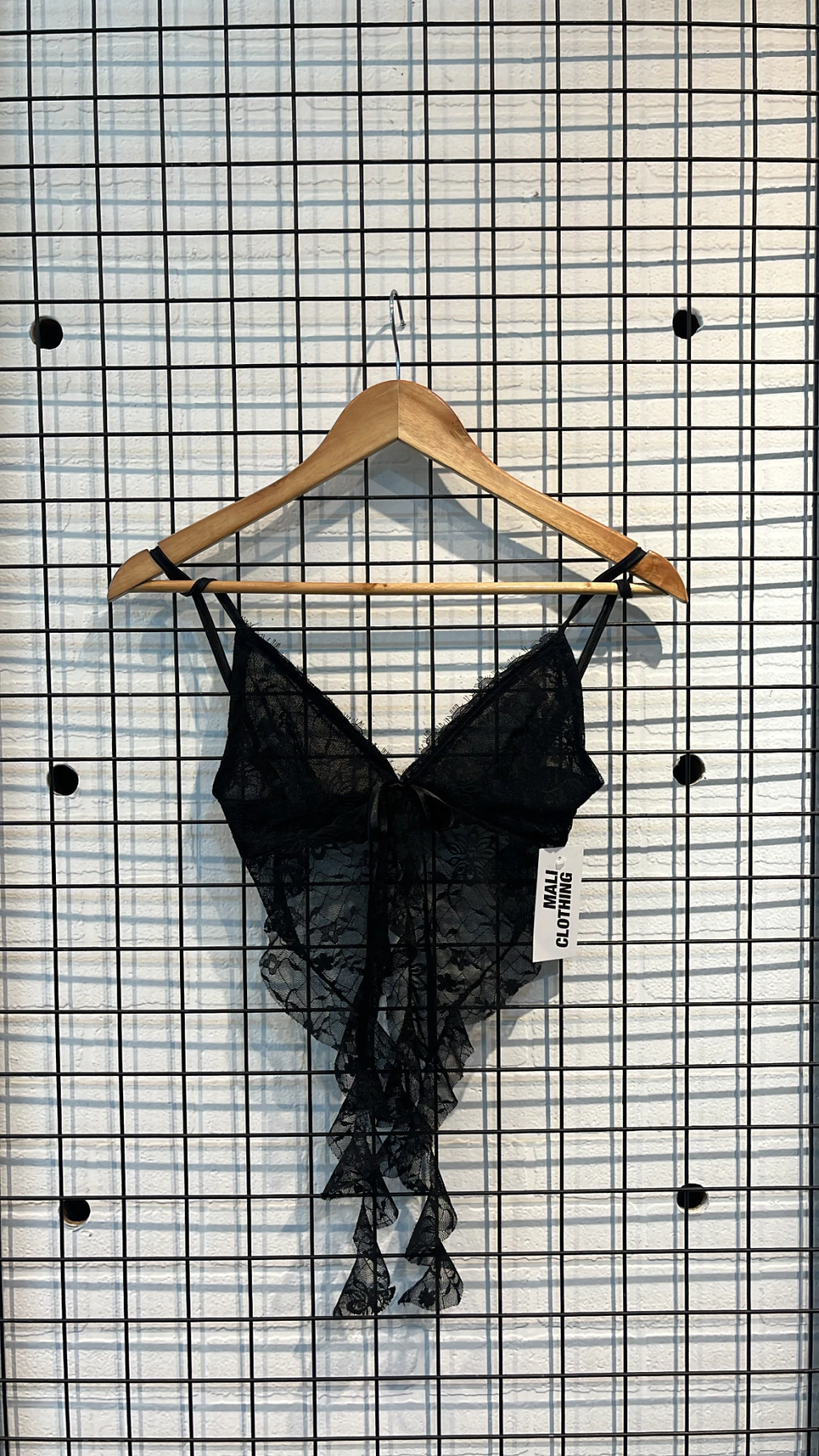 Top corpiño de encaje con elástico forrado en la espalda y breteles para ajustar.
